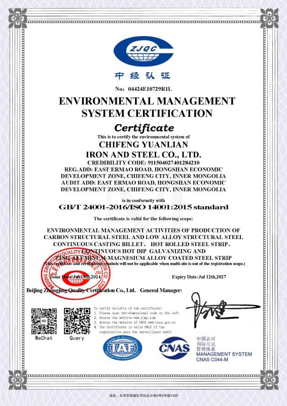 環境管理體系認證證書